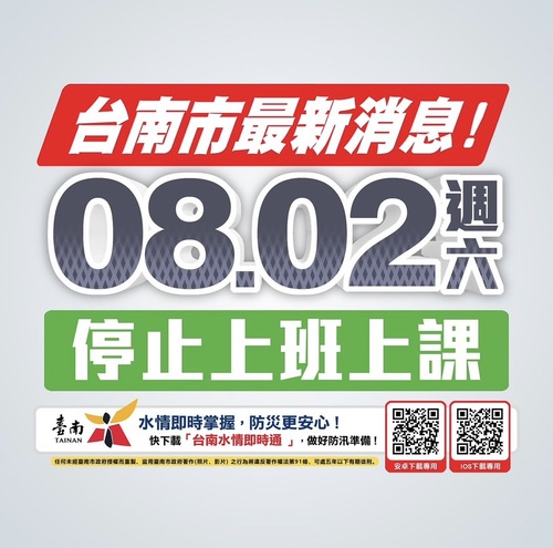 各位鄉親大家好: 114/8/2(六)因豪大雨來襲, 台南市政府公佈全日停班停課, 原訂台南|東仁診所第一週週六上午之門診&復健暫停一次。 敬祝 出入平安、身體健康!